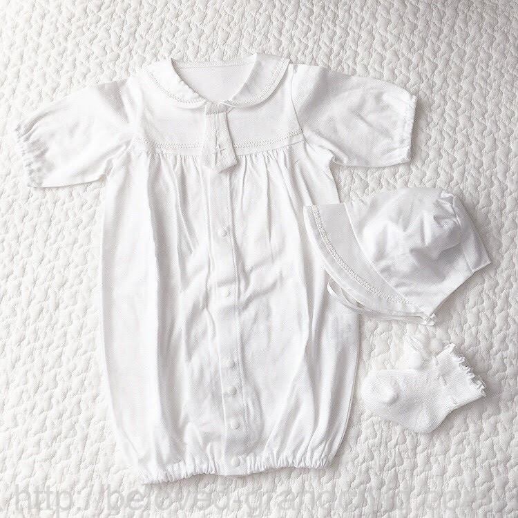 着心地のよい柔らかなオーガニックコットンの兼用ドレスにセレモニーに欠かせないボンネットの2点セットです。