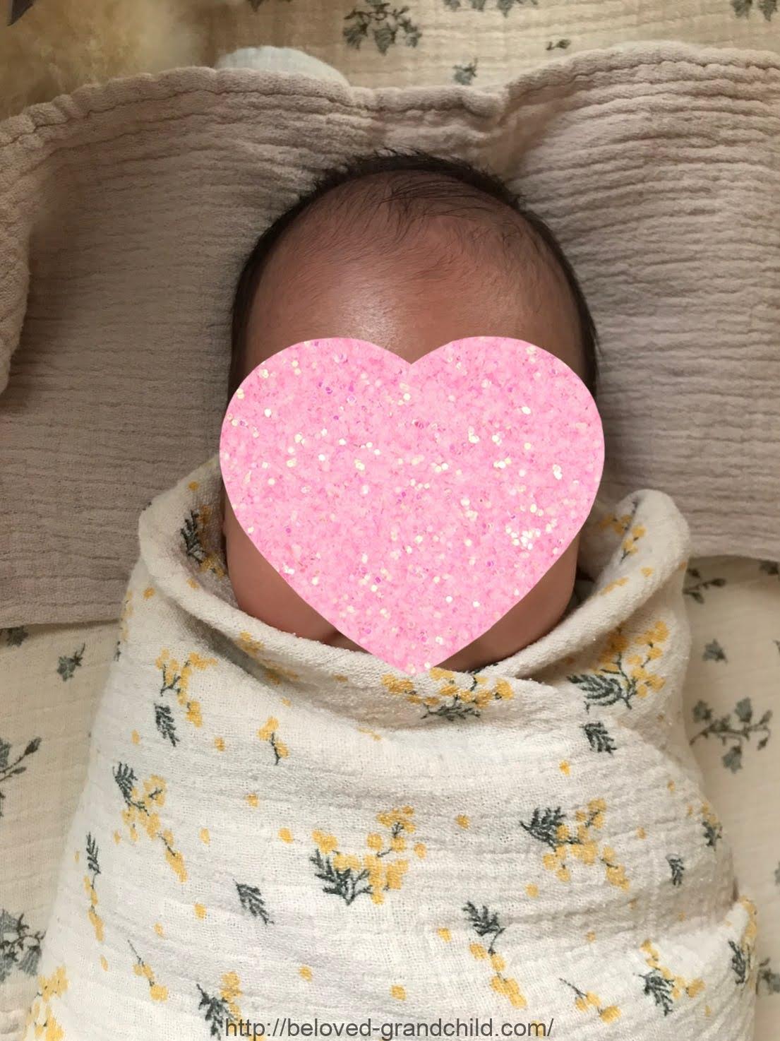 生後一か月半の赤ちゃんをくるみました。