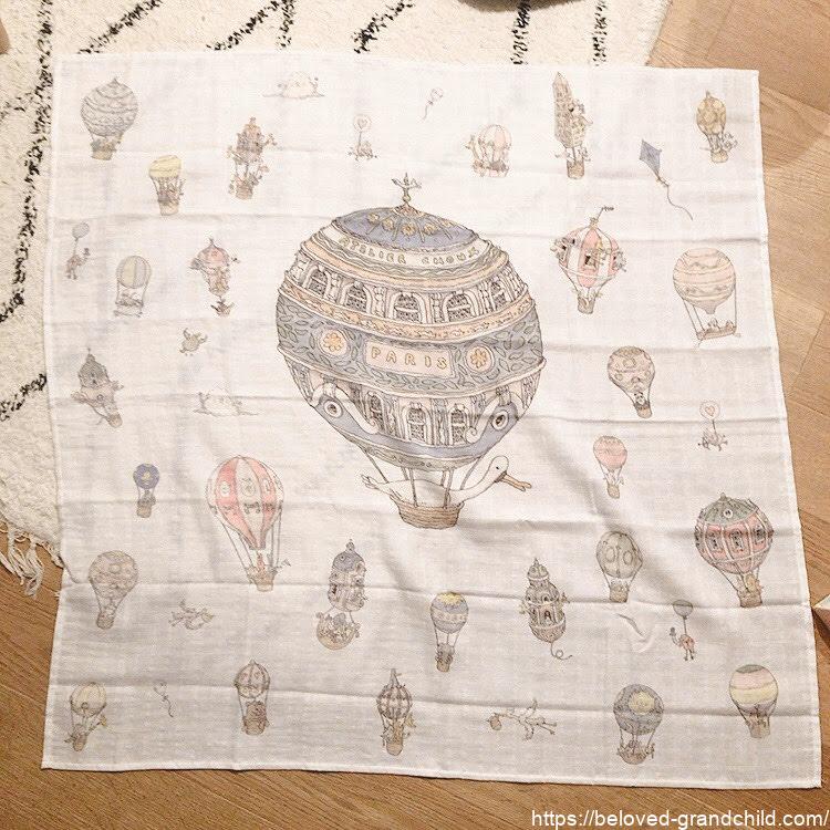 上質なモスリンコットン100%で作られていて、ベビーカーに敷いたりお昼寝に掛けたり大活躍します。