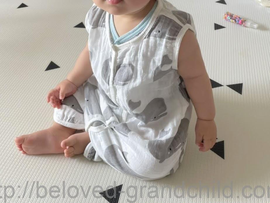 孫用(もうすぐ1歳になります)のこれから季節に着させたいガーゼのスリーパーを試してみました。