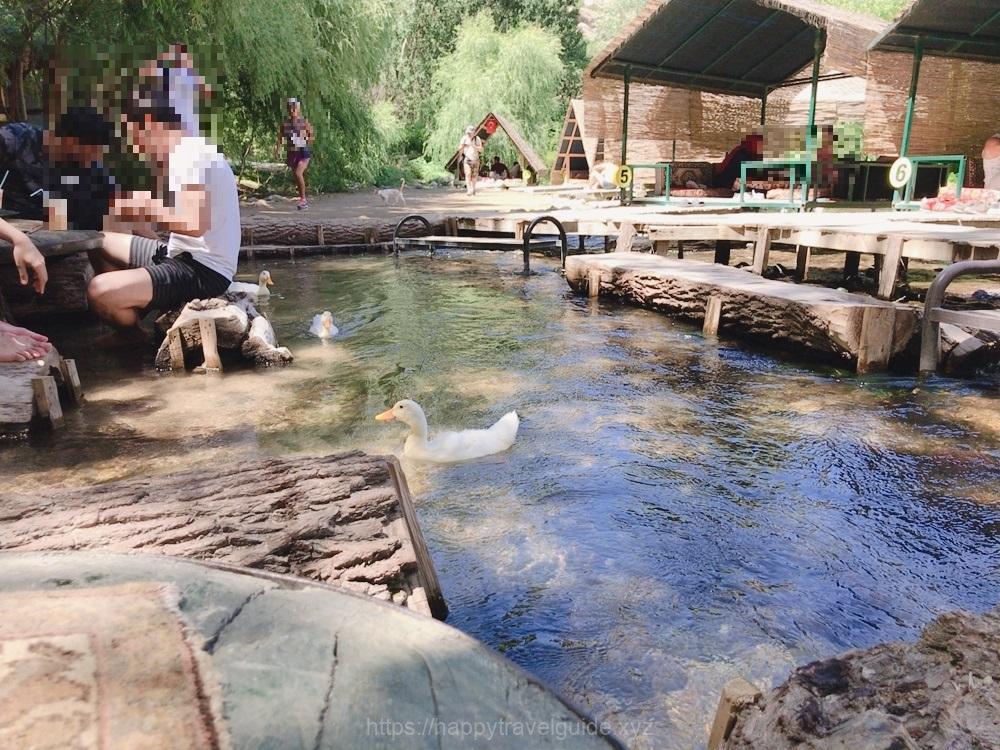 しばらく歩いたところで休憩スポットが現れ、この川の中に足を入れて涼みました。