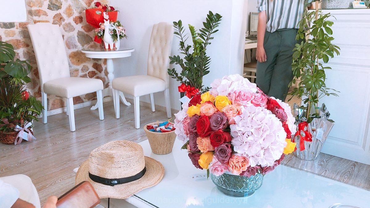 ホテルのフロントはいつもお花がたくさんあって素敵!