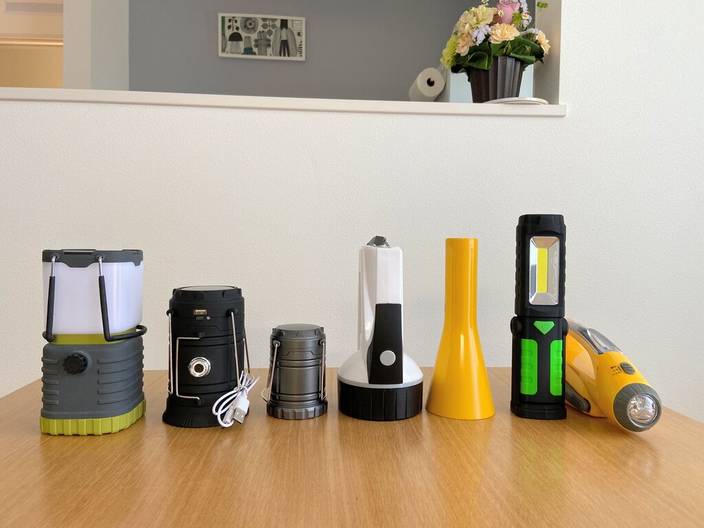 各部屋と非常持ち出し袋に入れている懐中電灯やランタンです。