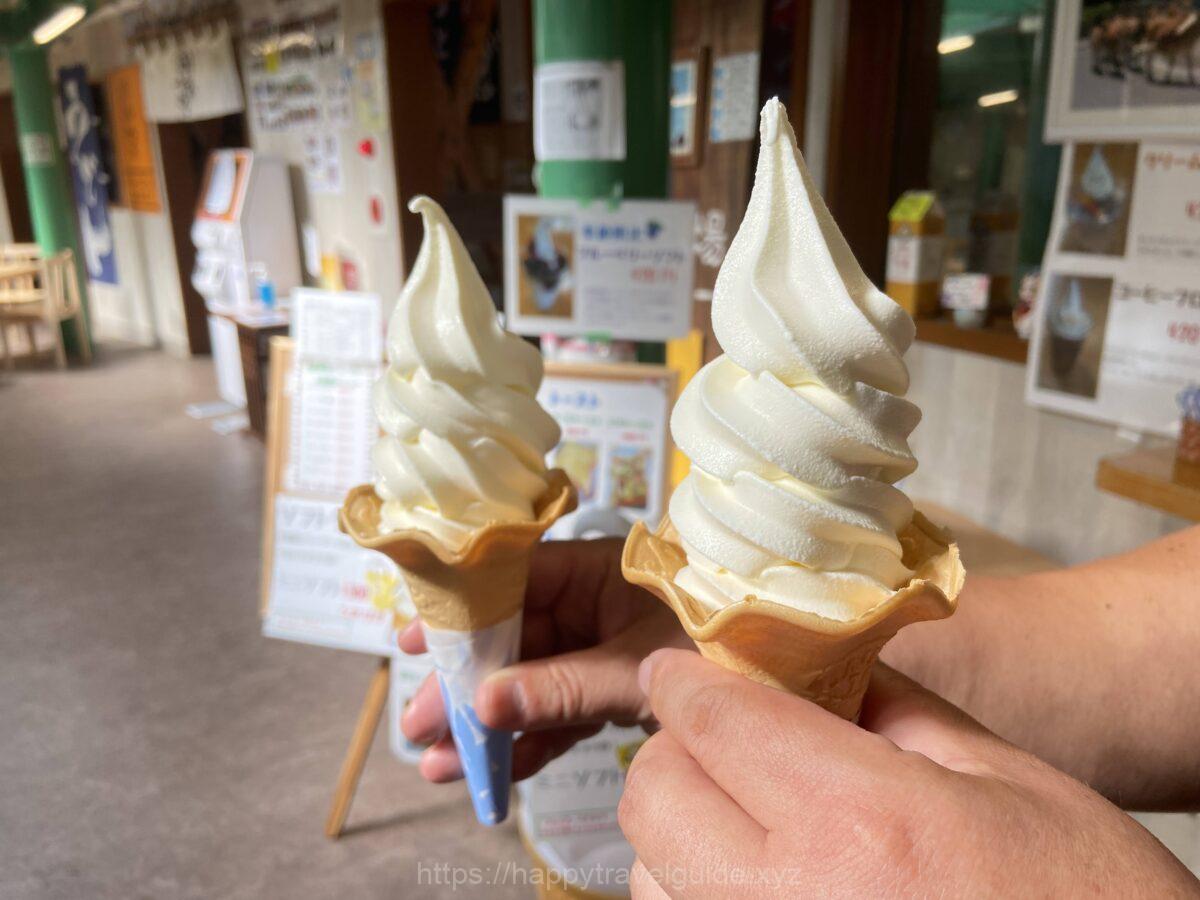 何かないかと道の駅内をウロウロする食いしん坊夫婦が美味しそうなソフトクリームを発見。