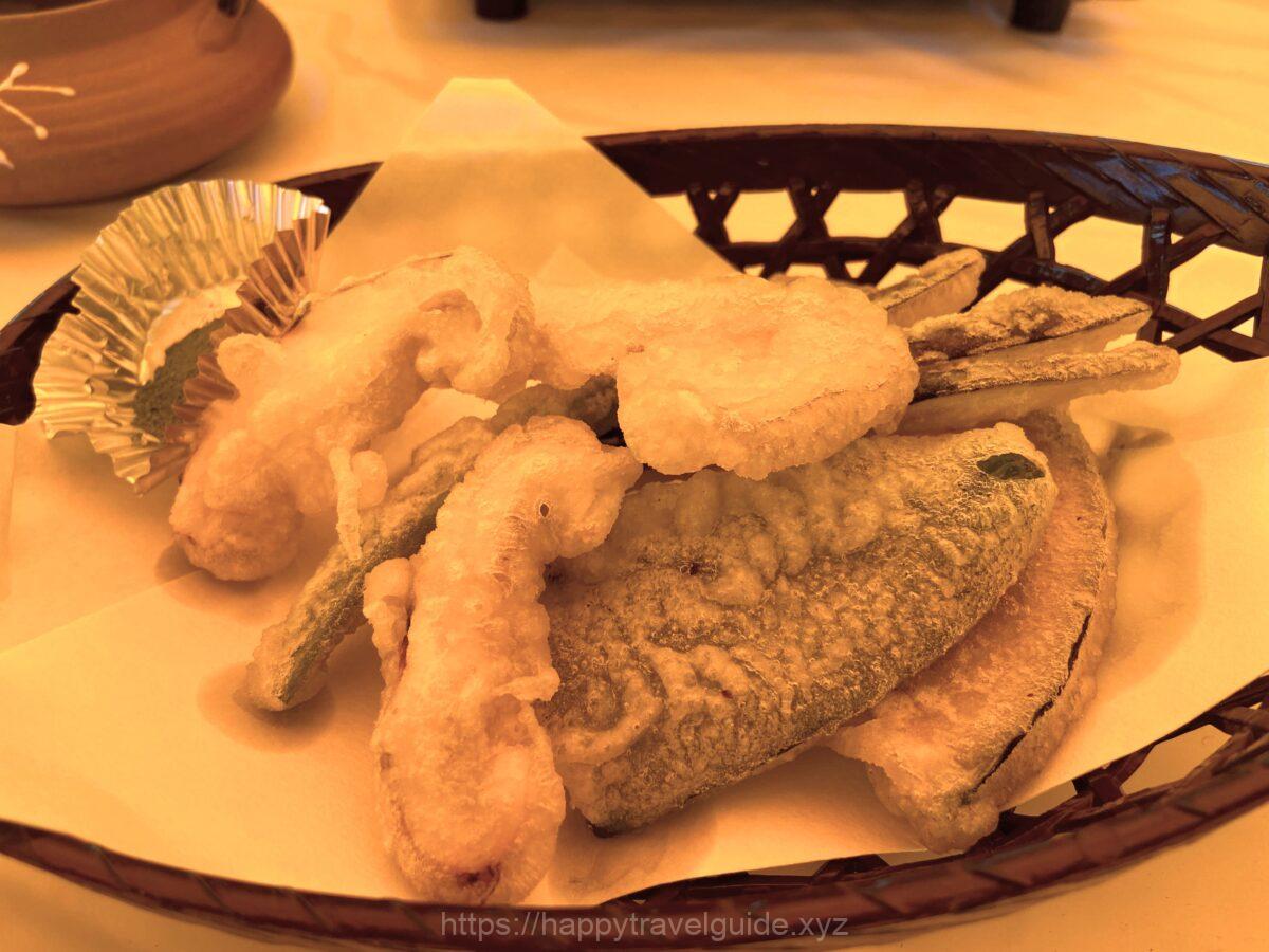 地元の野菜の天ぷらと一緒にお塩でいただきます。