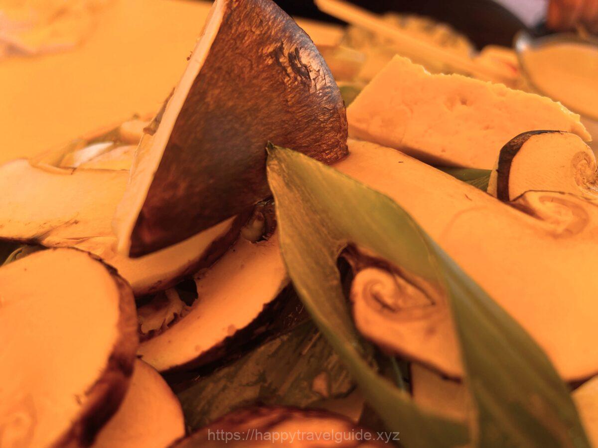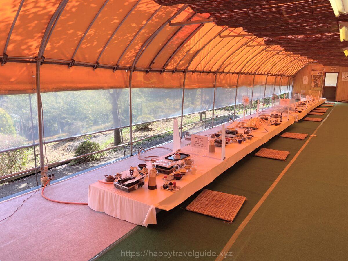 中へ入ると秘密のケンミンショーで見た、THE松茸小屋っといった感じです。