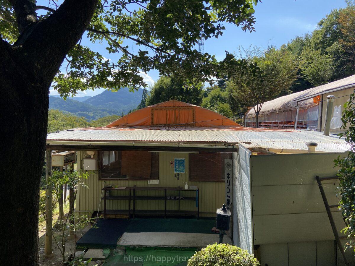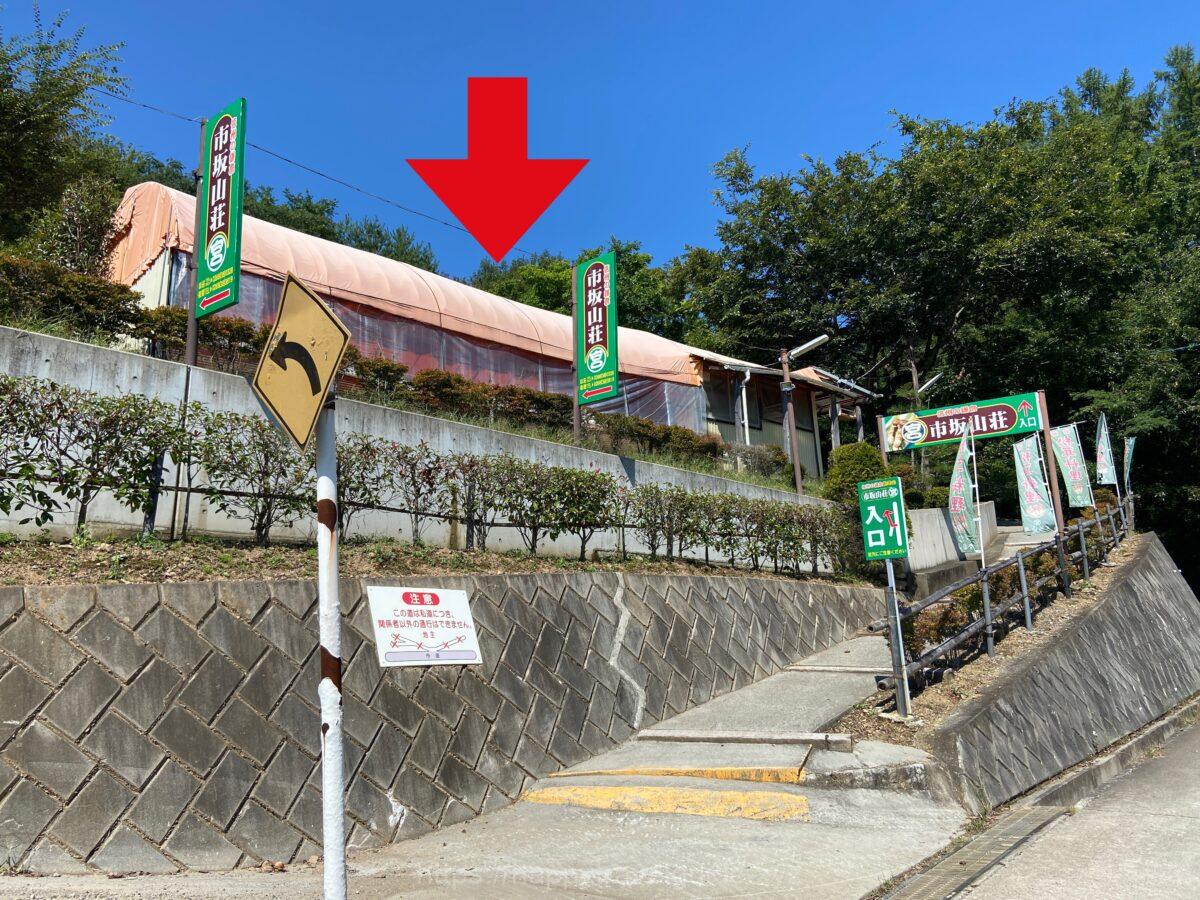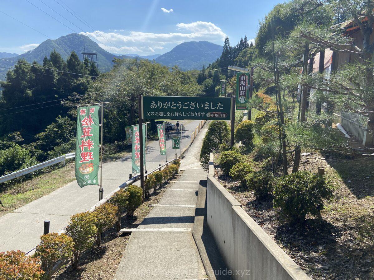 細い山道を車で登って行ったところに今回の目的の松茸小屋『市坂山荘』さんに到着です。