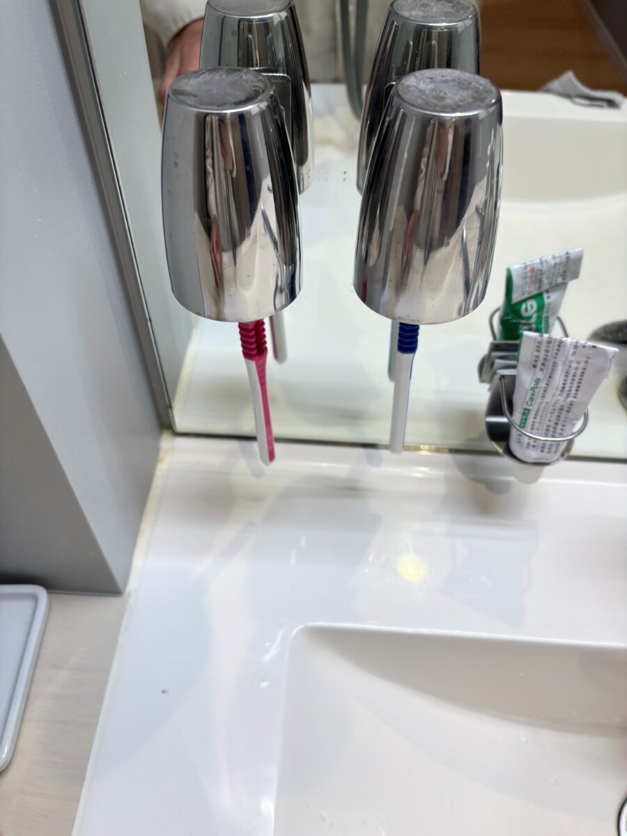 歯ブラシとコップを衛生的に使う方法!無印良品をやめて吊るす収納にしました