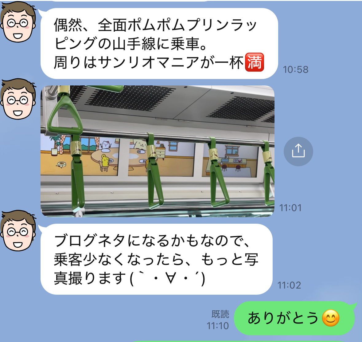 そして、山手線がポムポムプリン等にラッピングされていたと報告が。