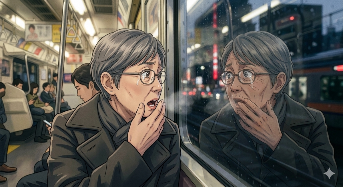 夜、電車に乗っていて、窓ガラスにふと映った自分の顔を見て