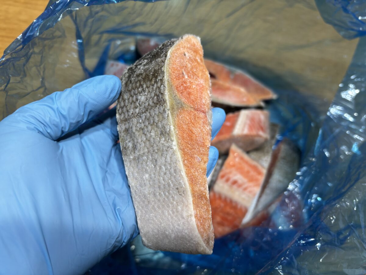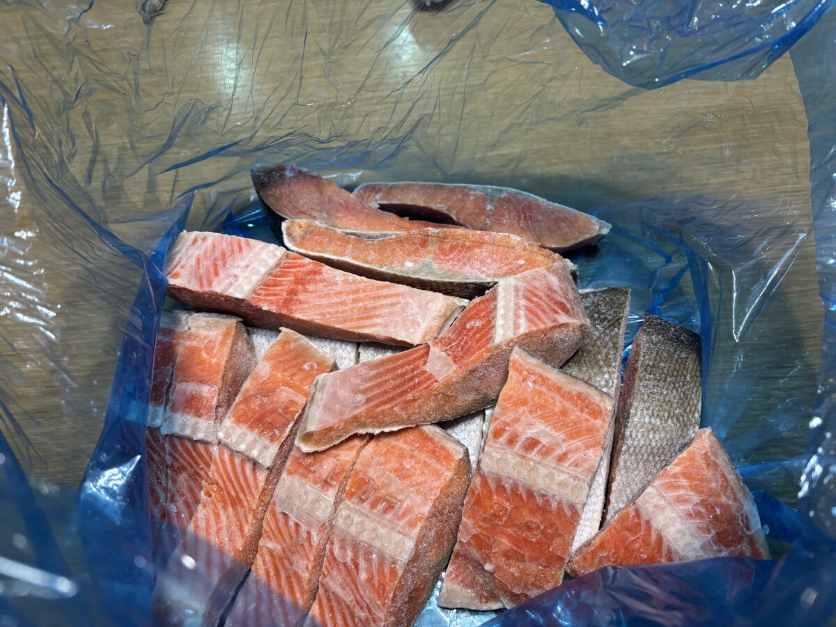 レビュー評価4.68の高評価!厚切りの紅鮭が2kgも届くので、冷凍庫にあると安心。
