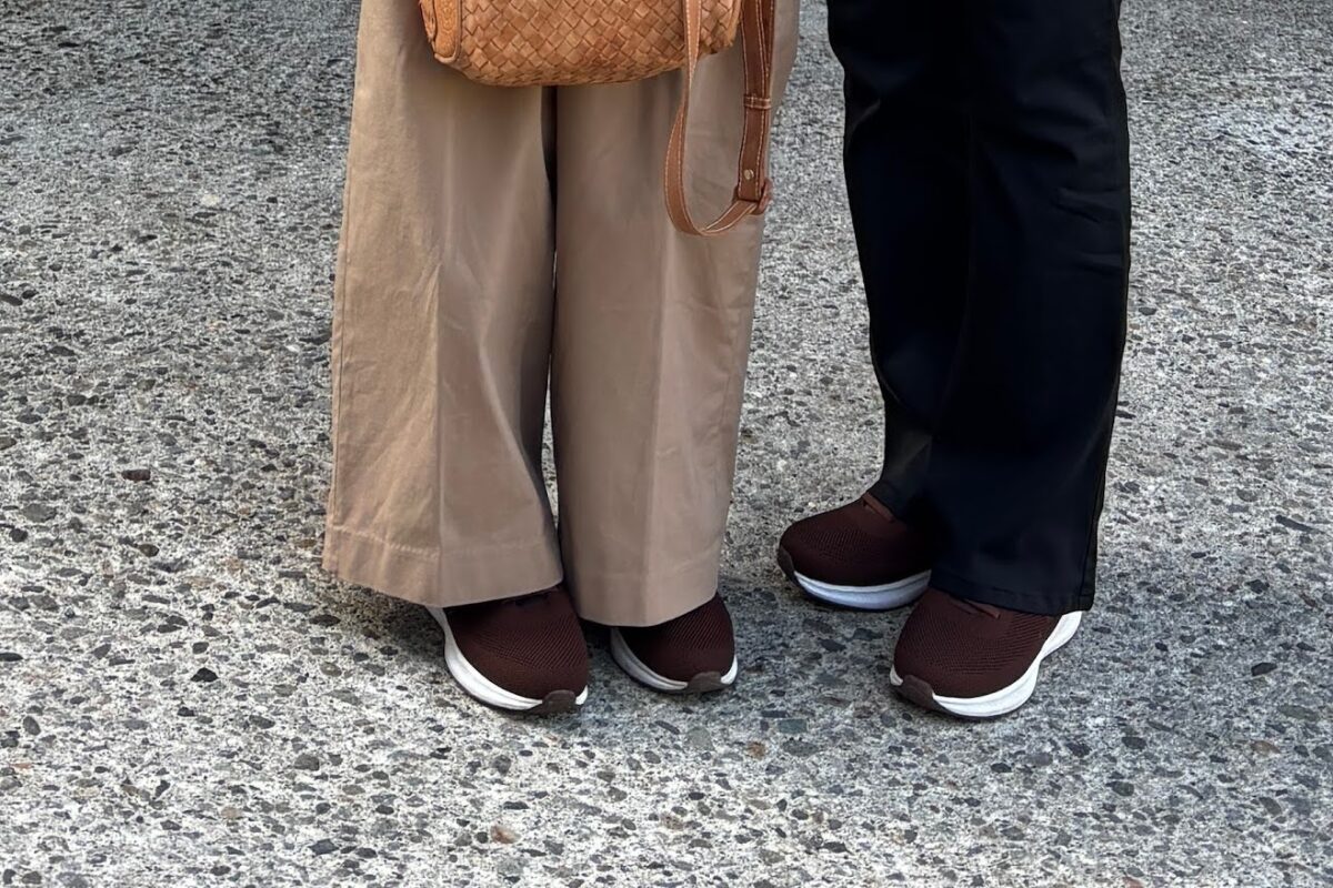 姉とまさかの“リュックもスニーカーもおそろい”。