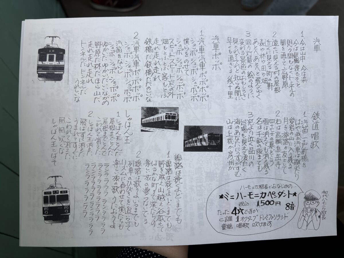 車掌さんのハーモニカ演奏に合わせて、みんなで歌うという楽しい時間。