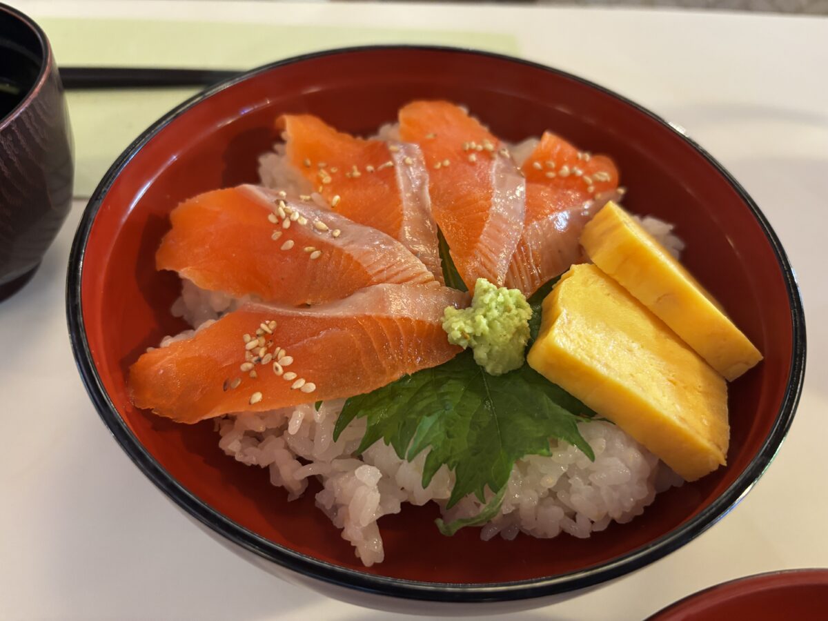 私はカツフライ丼、姉はサーモン丼。