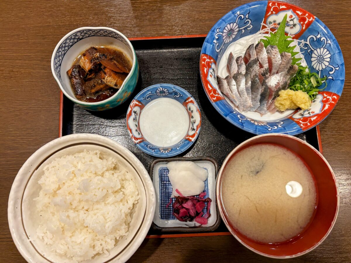 注文したのは、鰯のお刺身と煮つけがセットになった牧水定食と友人はヅケ丼。