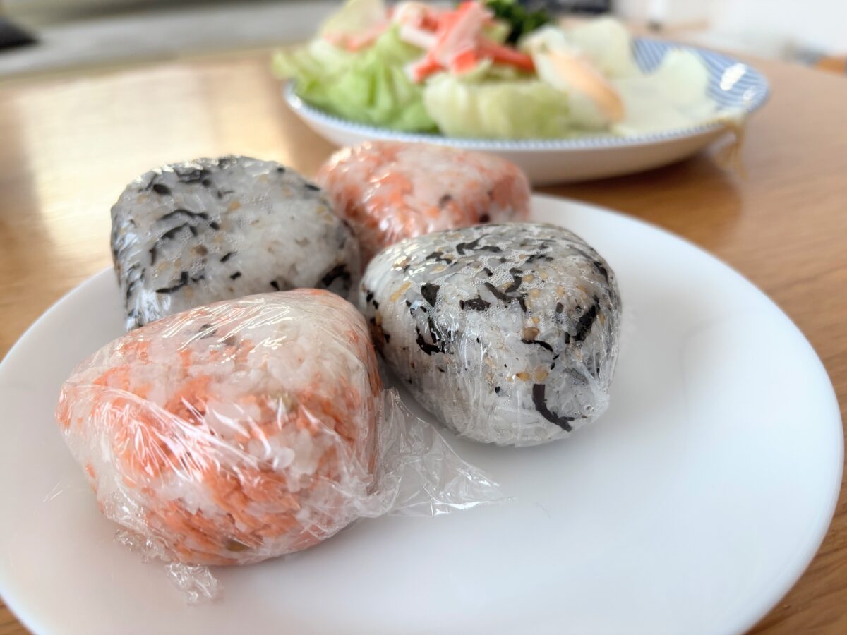 ひじきと鮭、2種類のおにぎりを作るのが最近の定番です。