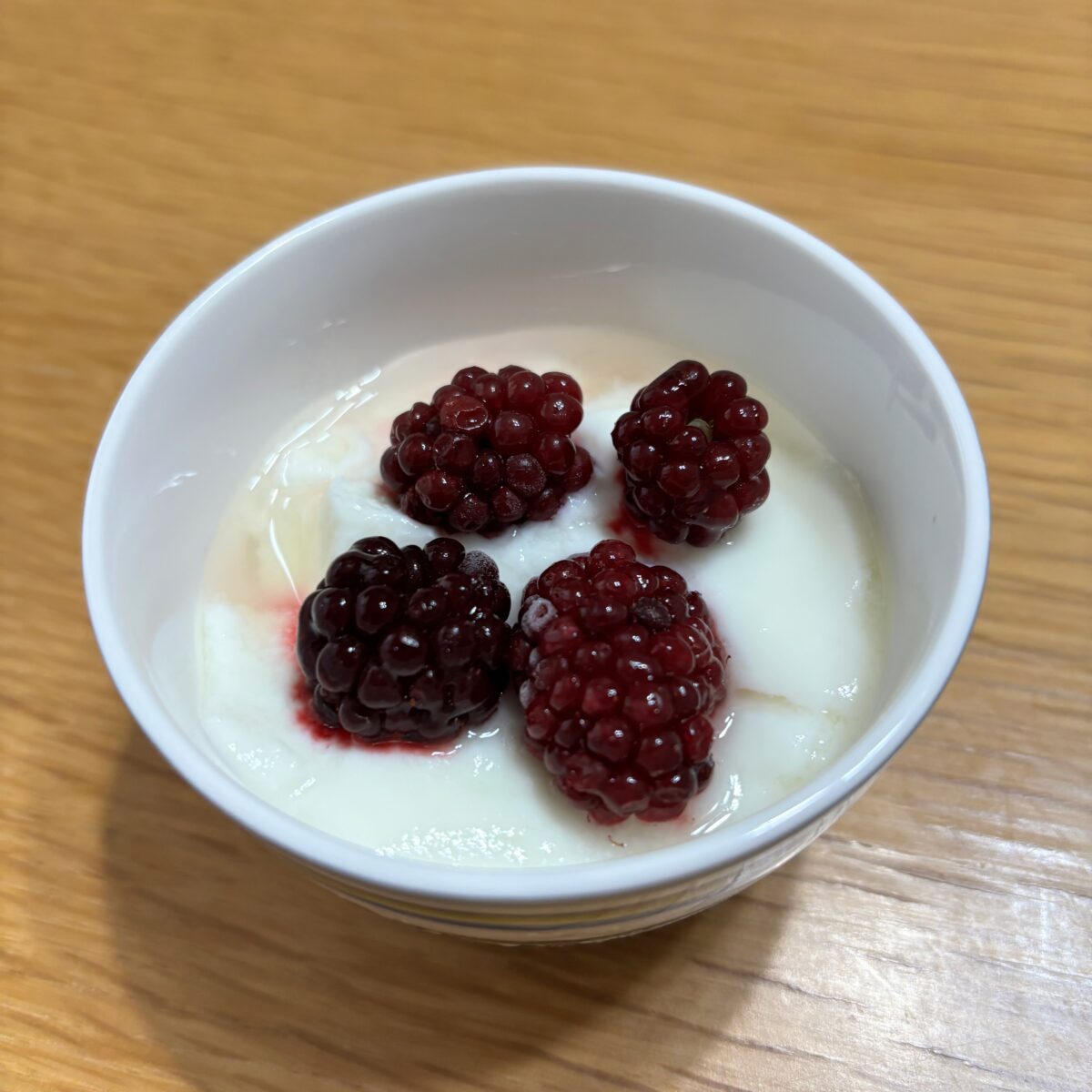 カレーを食べたあとは、新潟県阿賀町のふるさと納税でいただいたブラックベリーでお口直し。
