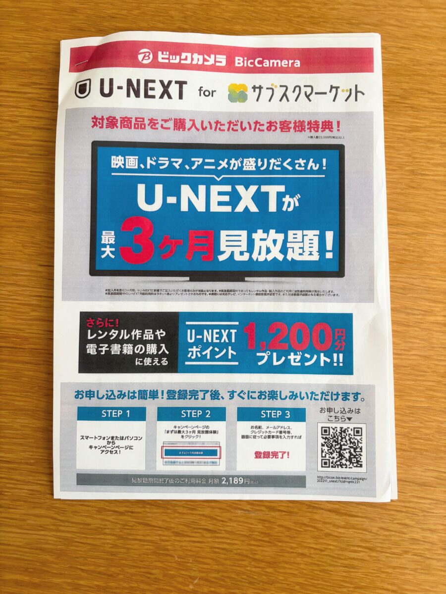 実は今回の移行で、U-NEXTが3か月無料だったんです。