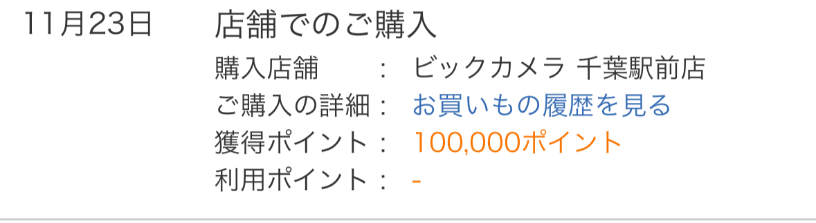 結果どうなったかというと、ビックカメラのポイントがどーんと10万円分プレゼント。
