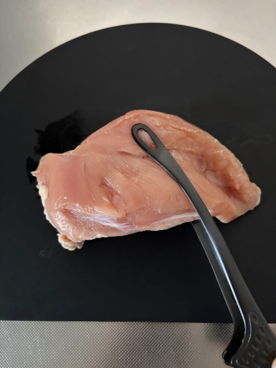実際に使ってみると、手になじむ大きさで、先端に力が入りやすく、熱々の食材を切るときにも重宝。