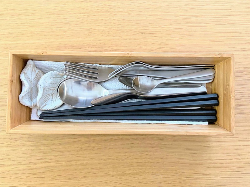 食事のときはレストラン方式でケースごと出して、洗い終わったらまとめて戻すだけ。