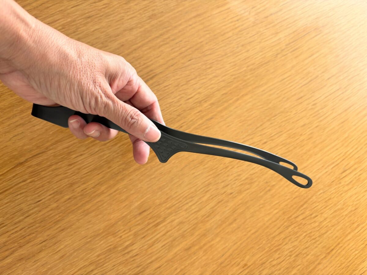 やや長めで、熱々のお肉も安心してつかめるし、脚付きだからテーブルに置いても先端が付かない。