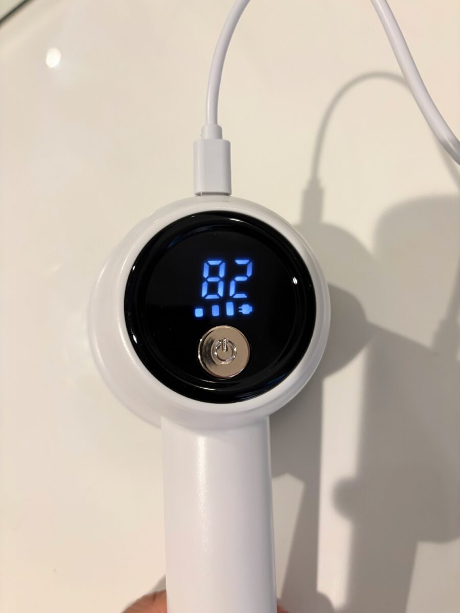 ただ、フル充電にしても2枚のニットをケアしたところで充電が切れてしまうんです。