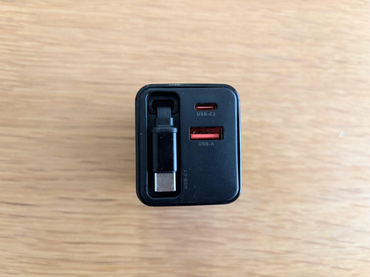 旅行の時もこれ一つ持っていけばいいので、荷物がスッキリ! 巻き取り式ってケーブルの劣化が心配だったりしますが、これは別に差し込み口が2つ付いているので、もし内蔵ケーブルがダメになっても普通の充電器としてそのまま使えるのが賢いなと感じています。