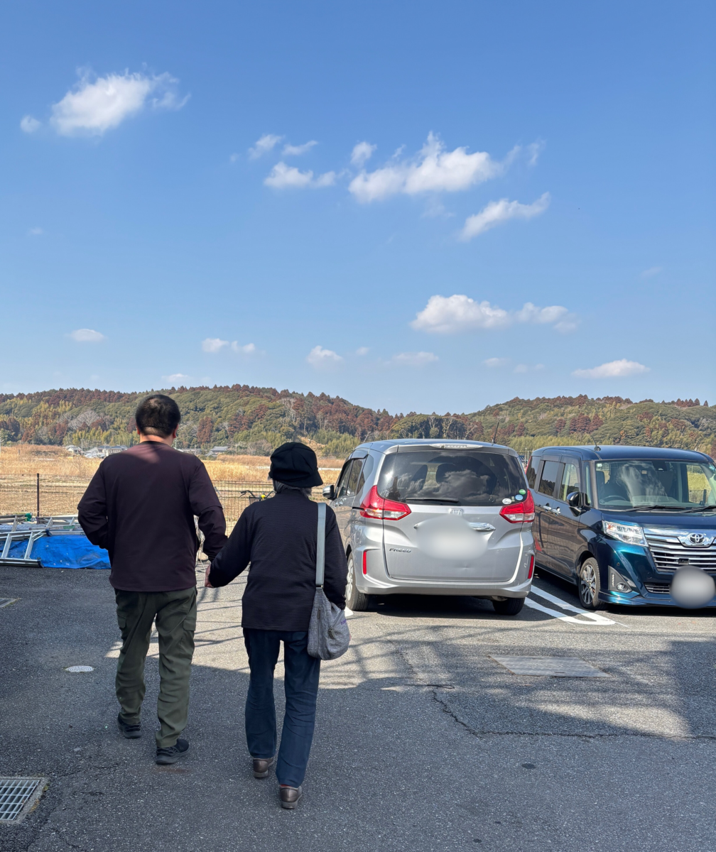 普段は歩行器を使って歩く要介護度1の義母ですが、この日は夫と手をつないで歩きました。